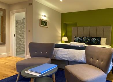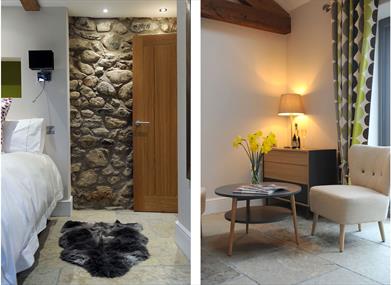 The barns adjacent to our home have been completely renovated to create 6 luxurious en-suite bedrooms plus a dining room, lounge with piano & contemporary stove, boot room and drying facilities. Inside you will find heated flagstone and timber floors, contemporary decor and some little extras to make you feel at home.