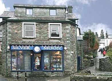 By public transport: Train to Windermere, then bus to Ambleside central bus station. It is 5 - 10 minutes walk from there. Ask for directions to the Tourist Information Centre or Salutation Hotel, and you will see Silver Moon directly ahead in North Road, when you get there. Above Stock is on top of Silver Moon, and its entrance is about 10 yards up Peggy Hill.