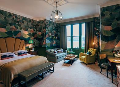 Woven into the landscape of the Lake District, the hotel's 47 central bedrooms, include several family suites and dog-friendly rooms. Most rooms have views of Ullswater and the fells beyond. Six double-braced shepherd huts with stargazing roofs and log burners, and a treehouse hidden within the oak trees, sit withing the grounds of the hotel. All have their own garden terraces and firepits for marshmallow toasting.