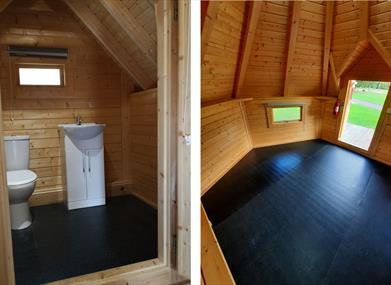 These have floor space for your blow up beds., they have an en-suite WC and sink, background heating, electric socket and fridge.