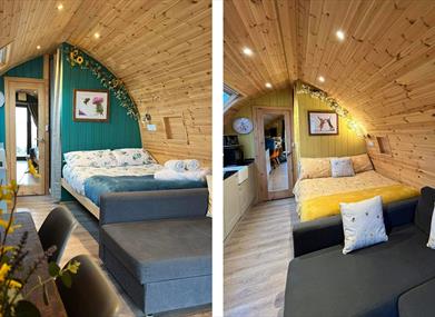 We have 4 Luxury Glamping pods Each sleeping upto 6 people.