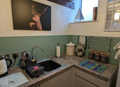 To get to Corner Cottage from here, head through the wooden sliding door past the car parking bays for The Coach House and Corner Cottage, and into The Courtyard. At the opposite side of The Courtyard and to the right of the opening onto the road is the entrance to your property. The stables directly face the property.