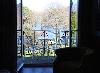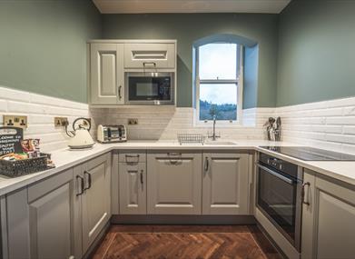 Enjoy breathtaking views across the lake and surrounding fells from the light-filled open-plan living and dining area. Large glass doors flood the space with natural light and open onto a private balcony overlooking Derwentwater. The separate kitchen is fully equipped for a comfortable self-catering stay.
