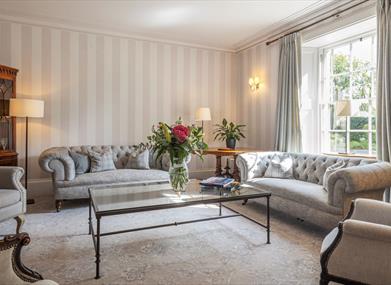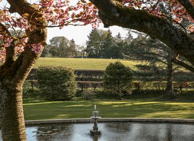 Limestone walls mark the sweeping, tree-lined driveway past the ornamental lake and fountain, where guests are greeted by the Grade II listed house nestled within manicured gardens.