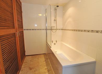 Entrance steps lead to a kitchen, diner and a large lounge with wood-burning stove. Downstairs are a double room ( with King size bed), a twin bedded room and bathroom with WC, wash basin and bath with over-bath shower. In the lounge a sofa bed makes a further double bed and there is a WC and wash basin on this level.