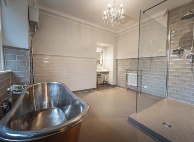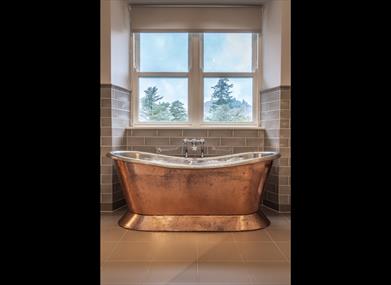 There are two bedrooms, one more spacious than the other but both enjoying the same stunning views across the lake. The luxurious bathroom features a striking signature copper and nickel bath alongside an expansive walk-in power shower, creating a true spa-like retreat.