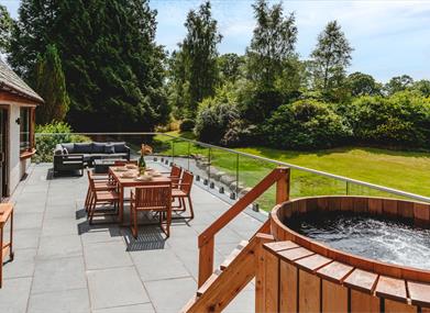 Guests are able to access the entire property, the large terrace with hot tub and the entire garden and woodland.