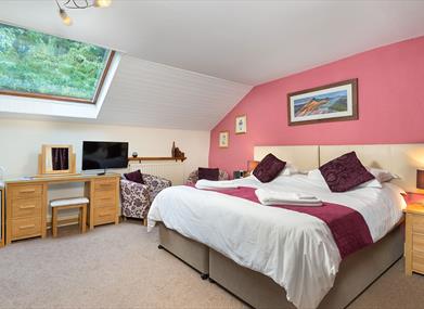 All our bedrooms are en-suite with TV/DVD/DAB, Wi-Fi, fridge and tea/coffee making facilities. We have one room suitable for our mobility impaired guests. Three of our six rooms are dog friendly with direct access to the garden and our own paddock.