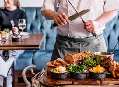 The perfect flexible gift that your loved one can enjoy whenever they wish. Share quality time and dine in the elegant restaurant between 12pm and 2pm, where courteous and friendly staff serve you a traditional three course Sunday lunch, with a selection of juicy roasts, fluffy Yorkshire puddings, mouth-watering roast potatoes and more from the traditional silver carving trolley.
