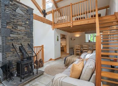 Features include beautiful location at the foot of the Howgill Fells, welcome pack with local produce, wood-burner, great views, vaulted ceiling, beautiful walks, family activities nearby (such as Lowther Castle, The Rheged Centre and Ullswater), red squirrels in the grounds and an enclosed garden at the front of the barn (which is perfect for a drink in the late afternoon sunshine!).