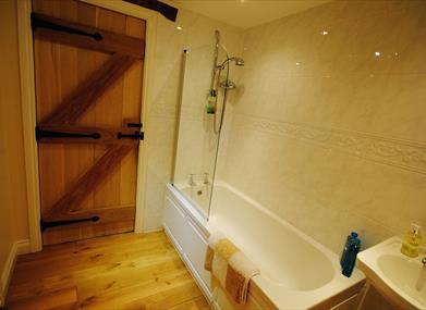 There is solid oak flooring, with scatter rugs, apart from bedrooms which have pure Herdwick-wool fitted carpets made locally in Kendal. The Byre has 2 bedrooms on the ground floor along with a bathroom which has a bath with shower over. There is also a shower room with toilet and basin on the first floor