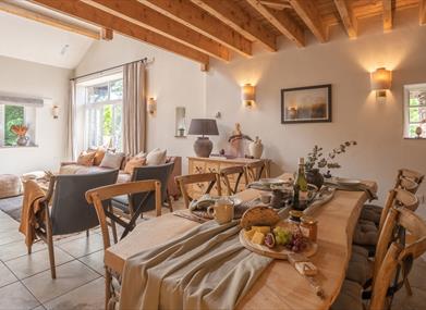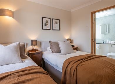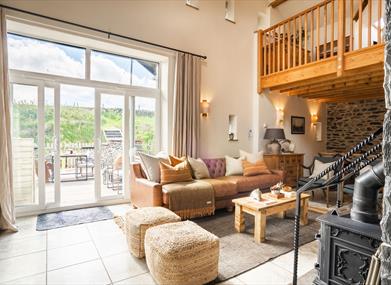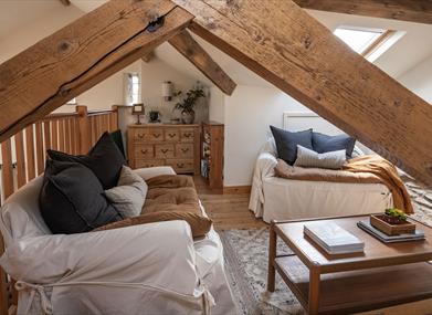 The Haystore has an upside-down layout, sleeping 4, with both bedrooms on the ground level (each is en-suite with whirlpool bath), open plan kitchen/living and additional mezzanine level.