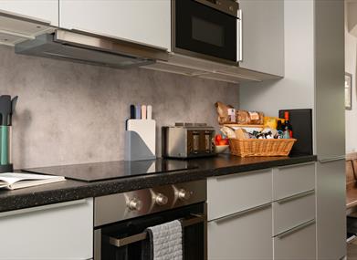 Open plan ground floor lounge, diner and kitchen is equipped with fridge/freezer, dishwasher, hob, oven and microwave. With all the crockery, cutlery, utensils and items you would expect in your own home.