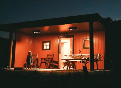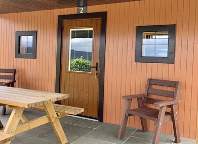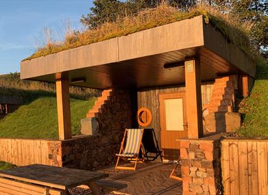 Gingerbread Houses (Sleeps 2 adults + 4 children) - In line with our sustainable ethos at our small holiday park, our large Gingerbread Houses are energy positive Shower,WC, small kitchen, large covered deck and excellent view.