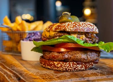 Our wonderful beer garden, described as the best this side of the Pennines, is the perfect place for a post hike drink or whiling away a warm summer afternoon. From regeneratively farmed pedigree shorthorn cattle at Gowbarrow Hall supplying mince for our burgers, to local venison, slow grown pork, free range eggs from Lucy’s chickens and herbs from our own kitchen garden, we are proud of the ingredients that make their way to your plate.