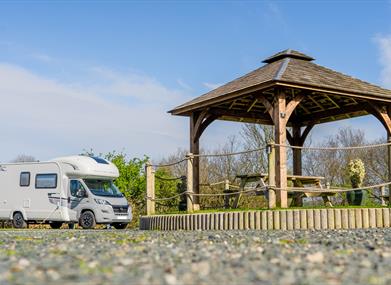 All touring pitches are hard standing and fully serviced. Charges are per night for up to four persons and include electric, water, TV hook-up, grey waste drainage, parking space by pitch, and awning. Dog charge £1.50 per night. For extra persons, an extra charge will apply per night.
