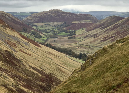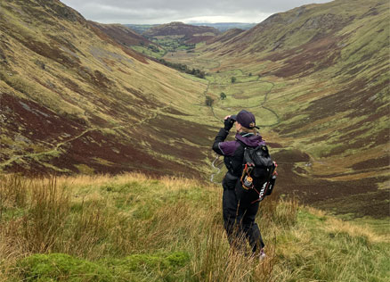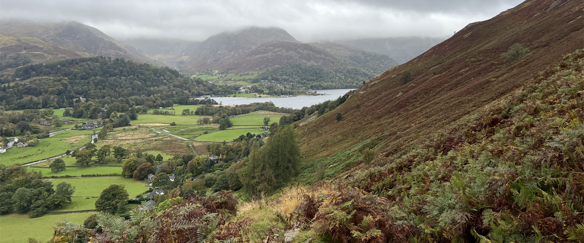The big day arrived, as did the wind - at a speed of 60km/h. After a chat with Nicky, it was rightly decided that this was much too fast for a hike up Hellvellyn. Not a problem: there are plenty of other walks to choose from, and an alternative plan was made. Changing (or even cancelling) plans to suit the conditions is key to safety, and something Nicky is used to. So we instead found ourselves heading up around the fellside near Angletarn Pikes at the south of Ullswater in search of not Wainwrights, but deer.