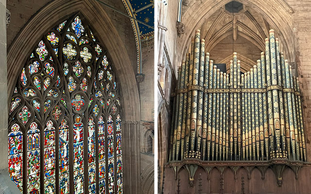 At this height you can also get up closer to the Medieval stained glass east window, which is the largest in the UK. At the far end marvel at the intricate drawings on the organ, which contains almost 4,000 pipes!