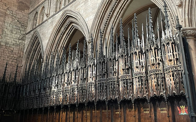 Looking down you can enjoy a bird’s eye view over the Bishops Seat and matching stalls – each of which has a unique intricate carving. At just £4 per person, the Angel’s View tour is an absolute bargain and a great way to learn more about the history and architecture of this wonderful building. When the tour is finished, you descend the spiral staircase back to the ground floor and you are free to continue to look around the Cathedral and take in the many distinctive feaures of this unique building.