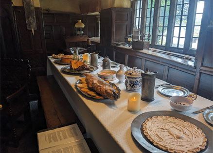 Elizabeth Birkett married into the family later in life and was another interesting character. She wrote her own book full of recipes and home remedies to ward off various ills. Some of these recipes had been recreated, with food such as clap bread, bean cakes, shred pie and wicker cakes laid out on the Kitchen table. Thanks to the busy ports on the western coast of Cumbria, Elizabeth could also obtain ingredients from further afield. For those interested to find out more, the Thursday guided tour always has a special focus on food.