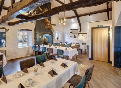 The Hayloft Suite offers a vaulted ceiling, whilst the adjoining Westmorland Suite is suitable for larger groups, both full of character with exposed beams. These suites can accommodate 60 guests each or 120 combined depending on required seating layout. On the ground floor the Cumbrian Suite can accommodate up to 40 people with a separate outside entrance.