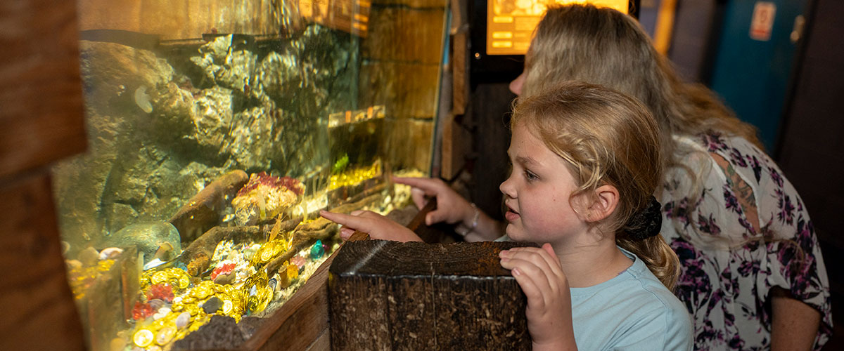 Explore displays full of everything from native species from our local streams, ponds and rivers through to creatures found in tropical marine reefs. Meet native shark and skate species in the shark and ray pool, and spot species inside the shipwreck tank who prefer to live at a greater depth in the ocean.
