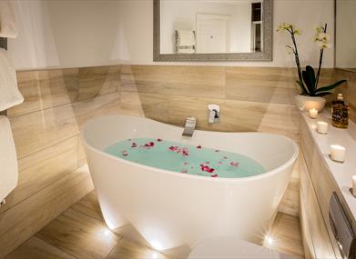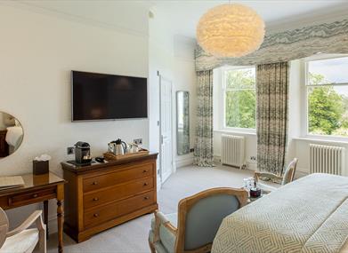 Lindeth Fell is a superb luxury bed and breakfast accommodation, perfectly located overlooking Lake Windermere. There are 14 individually designed bedrooms each with its own modern, airy bathroom. All have crisp Egyptian cotton bed linen, deluxe fluffy towels, bath robes, White company bathroom amenities, sherry decanters in the room on arrival, DAB radio / Bluetooth, and flat screen television. Many have superb lake views. All have tea / coffee trays and Nespresso coffee machines. Start the day with a delicious breakfast served in our sunny dining room, overlooking 7 acres of beautiful gardens and the stunning Coniston mountain range. We have a range of cold platters available to pre order in the evenings. We have two cosy lounges with log fires in winter, and a fully licensed residents bar.