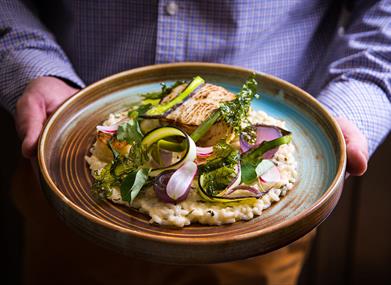 Rampsbeck’s style is contemporary British cooking at its best – but with a global twist. The three-course menu showcases Cumbria’s finest ingredients, including produce from the vegetable patch in the grounds. Classical techniques combine international flavours, from chorizo crusted cod loin with broad beans to king oyster mushroom and truffled goat’s curd. Seasonal and fresh, every dish comes with signature flair and individuality.