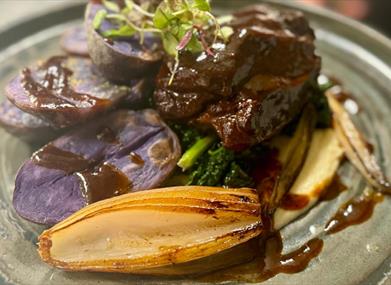 The menu showcases expertly prepared dishes, including gourmet takes on classic pies, fresh fish, and beautifully roasted meats, complemented by seasonal specials that highlight the best of Cumbrian produce. Vegetarian options are carefully crafted to match the same high standards.