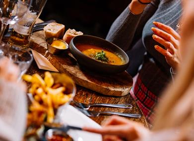 Serving food every day, you can always count on us for a cosy meal for two, a family celebration or a quick bite whilst passing through. Our large bar and our beautiful restaurant provide many seating options, all wheelchair accessible, including our dog friendly area, intimate booths, tables tucked away, and options for large groups.