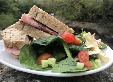 You will find The Tea Room is on Level 1 next to the river. There is a beautiful view of the River Clough and the Howgills from our outdoor seating area.