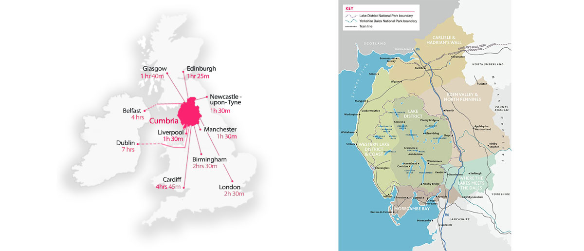 Cumbria is the UK’s third largest county in terms of area. Cumbria is home to the Lake District National Park, two National Landscapes and two UNESCO World Heritage sites.