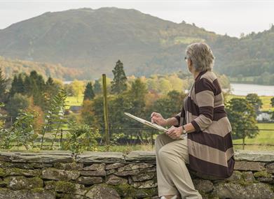 Allan Bank is a historic villa that combines a small, informal art gallery with a giant indoor mural space - a place for artists to explore nature. Surrounded by Romantic 19th century wooded pleasure grounds with stunning views over Grasmere, Allan Bank offers a rare chance to encounter red squirrels, have a picnic or relax by the fire. The welcoming village of Grasmere is nestled with its two picturesque lakes against a dramatic backdrop of Lake District fells. It's the perfect place to come explore, relax, reflect and be inspired by the views, just like William Wordsworth was.
