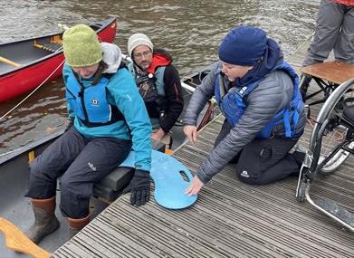 Activities include accessible Canoeing, Sailing and Rock Climbing. We have a wheelchair accessible (and float onboard) support boat called 'Freedom". Freedom allows us to take one-way journeys with the option to whisk you back to use the accessible toilets or give you somewhere to rest. Freedom gives you the confidence of knowing that if you somehow ended up in the water, there is an easy way to get back into the Canoe (our water ramp).