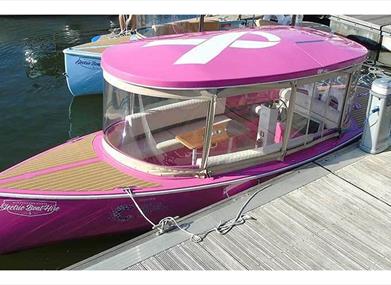 This imported, custom-finished Fantail boat is finished in Pink and is fitted with a hard top which carries the Breast Cancer Awareness pink ribbon. This pink beauty is designed for fun and you can specially reserve this exclusive boat for hire on Lake Windermere.