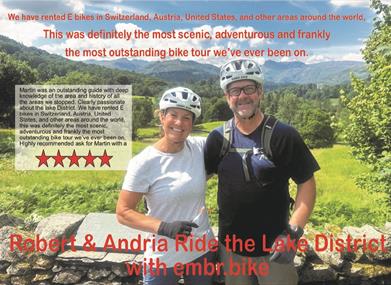 GOOGLE RECOMENDS, EMBR.bike Adventures who offers highly-rated, guided electric mountain bike tours in the Ambleside area of the Lake District, with reviews consistently praising their top-quality e-bikes, knowledgeable and friendly guides like Martyn, and their ability to tailor routes to different skill levels and interests. Customers highlight unforgettable experiences, stunning scenery, and feeling accomplished on challenging trails they wouldn't have attempted on their own.
