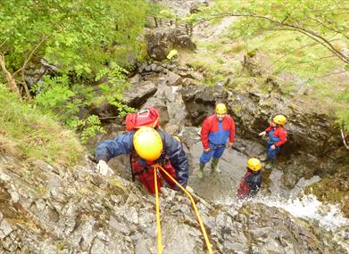 It can be as challenging as you want to make it. Ranging from small groups in steep wet gorges involving roped ascents, to the fun of group set challenges. It may involve short scrambles, possible squeezes and crawls or even a rough stream walk. It can take you to places on the fell that you’d never get to unless you were following the water.