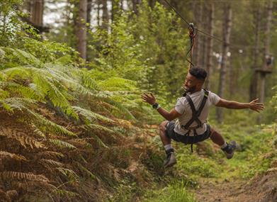 Go Ape Treetop Challenge is an exhilarating self-guided 2-3-hour experience through the forest canopy. After a detailed safety briefing from one of our experienced instructors, you’ll be tackling canopy-high crossings, leaping off free-fall Tarzan swings and riding high-speed ziplines. Our rope ladders are your gateway to a hidden world. Grown-up fun in the great outdoors. For those over 1.4 metres tall.
