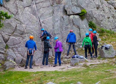 Challenge yourself and have a go at Rock Climbing. The Lake District is the birthplace of Rock Climbing offering some of the finest climbing in the UK. This half-day rock climbing experience is for those who have never been climbing before or for those wanting a taste of outdoor rock climbing. During this session you'll learn the basics of movement on rock, making your way to the top safety attached to a tight rope. You'll also be taught the basics of belaying under the supervision of our friendly instructors. The venue is situated in a gently elevated location giving stunning views of the Langdale valley