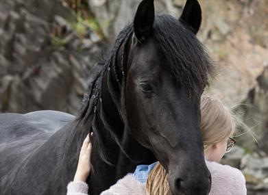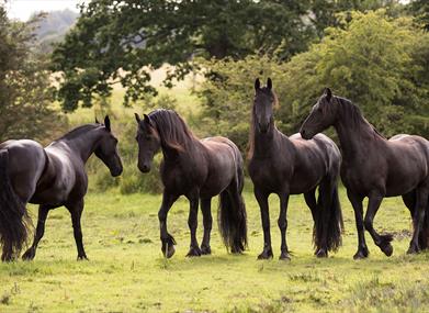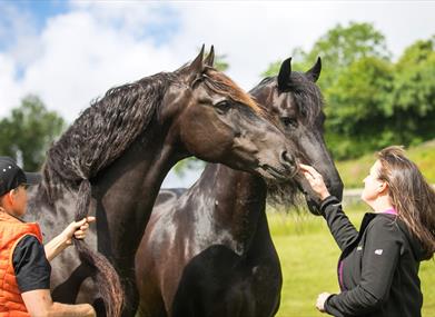 Specialising in Friesian horses, Black Horses Ltd have spent nearly 2 decades building a family of 15 Friesians (and a wanna-be Friesian, their miniature shetland!) who all take great delight in being entertained by our visitors. We are located at Greenbank Farm in the lovely little village of Cartmel and everything we do is about the horses. Internationally renowned Tracey Alexander and her team give Friesians a home for life and they warmly welcome you to book a 'Meet the Horses Tour' where you will be taken around the farm to meet all the black beauties - you may even see some being worked or groomed. You’ll be encouraged to stroke their velvety noses and indulge in cuddles and scratches with them as they are incredibly friendly and people-oriented horses.