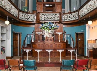 The Hive is run entirely by a team of dedicated volunteers whose aim is to promote the cultural heritage of the area and to create a community space in the village. The Hive is a stunning venue where local artists, crafters and musicians, as well as those from further afield, can showcase their talents through workshops, talks and live gigs. Additionally it is open for regular pop up cafes, monthly community lunches and special food events, where you can enjoy delicious home cooked meals or eat food purchased from street food trucks whilst enjoying our fully licensed bar. The cafe and ground floor performance space can also be used for private functions, including weddings, with the option of in-house catering. On the upper floor we have private rooms for hire for meetings or workshops. We have a quality audio-visual system, including projection and free Wi-fi. We even have the original chapel organ which can be used for recitals!