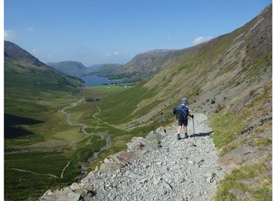After exploring Rosthwaite, the trail continues along the old tourist coach ‘road’ to the top of Honister Pass, before following an old miners’ track that descends beside Warnscale Beck. There are some truly breath-taking views over Buttermere and Crummock Water here, which are worth pausing to admire before pressing on to the village of Buttermere.