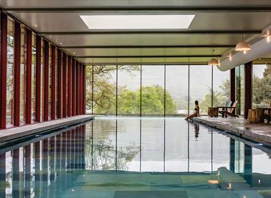 Flanked by two walls of glass, the pool has views that blur the boundary between you and your lakeside location. A skylight floods the pool with further natural light – you can float beneath the clouds, indoors. Slate flagstones surround the pool and ultra-violet filters in the water keep the pool low on chlorine. For young children, the pool has a shallow area. The pool hall leads to the outdoor hot tub – plain and simple, with no bubbles or jets – and the sauna.