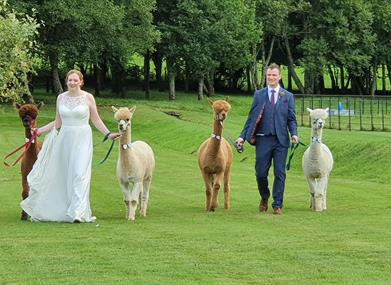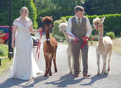 Alpacas are known for their therapeutic effects and can boost morale, encouraging people to be happy and relaxed which in turn improves wellness and wellbeing. Our alpacas can also help you celebrate your special day as alternative wedding guests! Guests love to meet, greet and feed our alpacas spending time with them and enjoying unforgettable photo opportunities and something for a unique wedding album! We have worked with quite a few Cumbria wedding venues who are happy to have our alpacas as guests so get in touch if you would like something a little bit different!