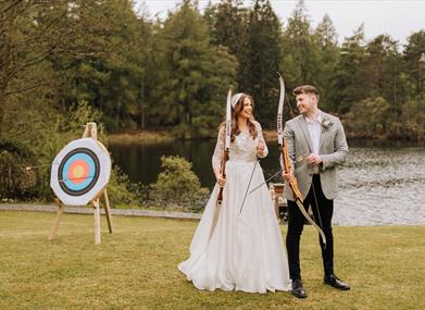 The country-house-come-hotel has a wealth of beautiful spaces and services, including a cosy bar and lounge complete with a wood-burning stove, spacious and stylish function room with floor-to-ceiling windows and a balcony boasting breathtaking views, well-appointed bedrooms (sleeping up to 16 guests), state-of-the-art kitchen for their Michelin trained team to cook up a storm and incredible spa facilities including an indoor swimming pool, sauna, treatment room and outdoor hot tubs. Plus, who can forget the estate itself, with gardens to enjoy, woodland to explore, views to admire and even their tranquil tarn for you to take a few minutes to reflect on this special time together.